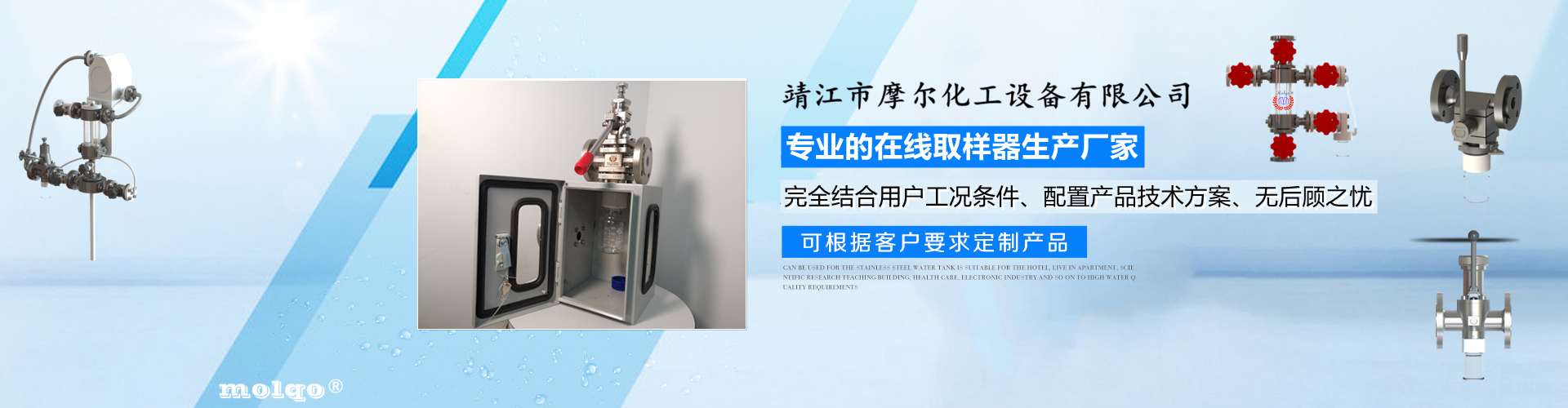 靖江市摩爾化工設(shè)備有限公司位于蘇中明珠——江蘇省靖江市城南工業(yè)園區(qū)東進(jìn)路北側(cè)天元艾爾瑞內(nèi),另有生產(chǎn)基地位于靖江市經(jīng)濟(jì)技術(shù)開(kāi)發(fā)區(qū)新號(hào)路1號(hào)鼎電科技園內(nèi)。我公司由數(shù)名長(zhǎng)期從事化工生產(chǎn)、氟塑襯里模具開(kāi)發(fā)以及機(jī)械自控設(shè)備的專(zhuān)業(yè)人員共同合作成立,致力于提供客戶(hù)最優(yōu)的高效在線取樣、反應(yīng)及精餾分離設(shè)備,為客戶(hù)提供合理的設(shè)備選型方案,以幫助客戶(hù)提高綜合生產(chǎn)效率以及改善生產(chǎn)現(xiàn)場(chǎng)環(huán)境為目標(biāo)。 本公司主要制造及銷(xiāo)售的產(chǎn)品有:釜用在線取樣裝置,管道取樣閥,釜用清洗噴淋裝置、搪玻璃設(shè)備、GMP專(zhuān)用搪玻璃設(shè)備、氟塑襯里設(shè)備、攪拌器、釜用機(jī)械密封、氣動(dòng)閥門(mén)及搪玻璃管道、襯氟閥門(mén)管道、非標(biāo)不銹鋼容器,精餾塔塔器、片式冷凝器及PTFE密封件、鋯、鈦、鉭、鎳等加工件制品。我司是一家集研發(fā)銷(xiāo)售、設(shè)計(jì)咨詢(xún)服務(wù)于一體的專(zhuān)業(yè)···